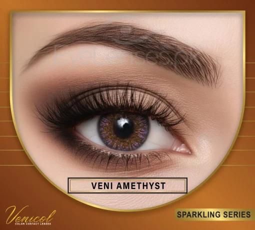 Immerse yourself in ‘Veni-Amethyst’ lenses, where the enchanting hue of amethyst unveils a mesmerizing gaze. Inspired by the allure of precious gemstones, these lenses redefine natural beauty, promising an alluring and captivating look. The seamless fusion of amethyst shades imparts eyes with a mystical and charming appeal, perfect for various occasions. ‘Veni-Amethyst’ lenses celebrate your confidence, infusing a captivating allure into every glance, adding a touch of mystical elegance to your natural beauty.